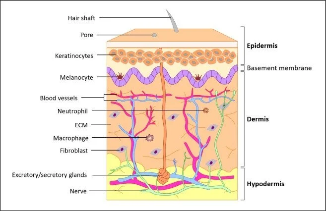 Absorption cutanée à travers les follicules et les glandes, qui peuvent également présenter des "effets de réservoir" dans lesquels les substances peuvent être stockées dans les glandes pour être absorbées au fil du temps